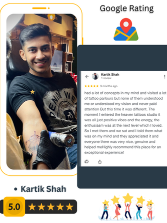 Our greatest pride comes from the smiles and stories of our clients. Each design we create reflects not just our artistry but the trust and satisfaction of those who wear it. From first-timers to tattoo collectors, our clients consistently praise our creativity, professionalism, and attention to detail. Their feedback fuels our passion, inspiring us to push boundaries and deliver unforgettable experiences. Join the growing family of happy customers and let us turn your vision into a masterpiece you’ll love for life.